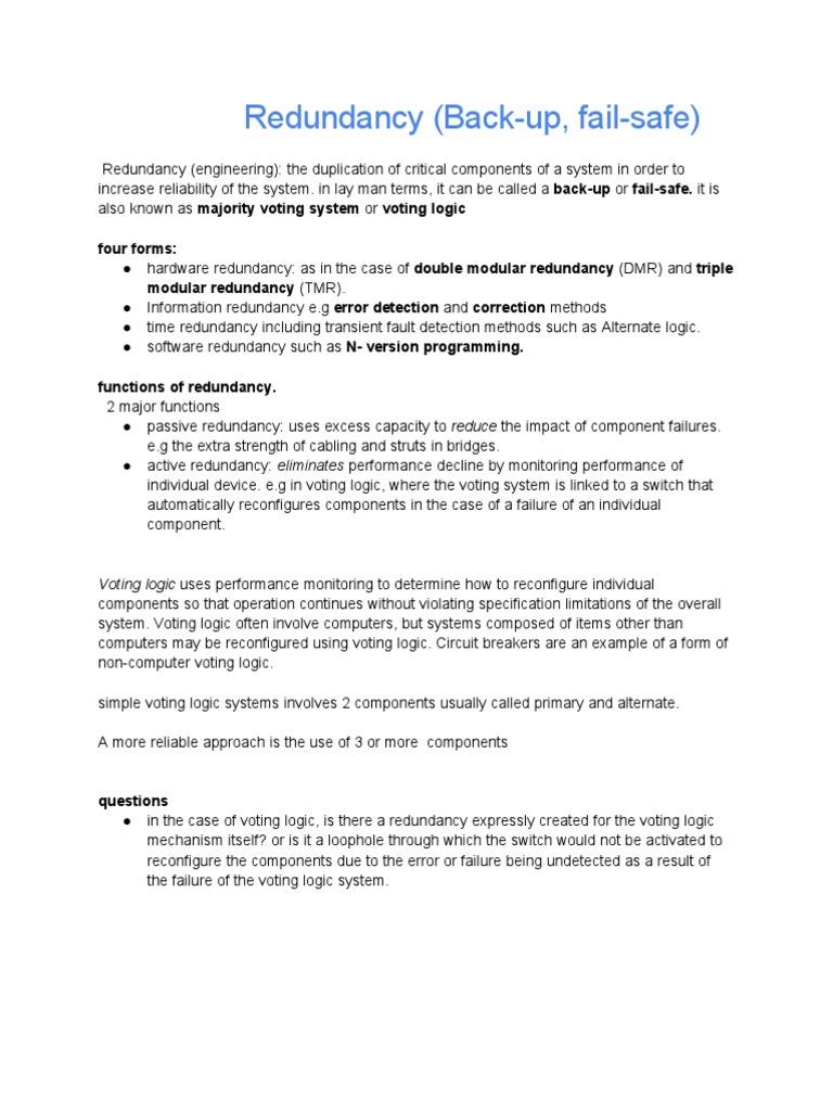 Redundancy (BackUp, Failsafe).. Notes On Systems Science Systems